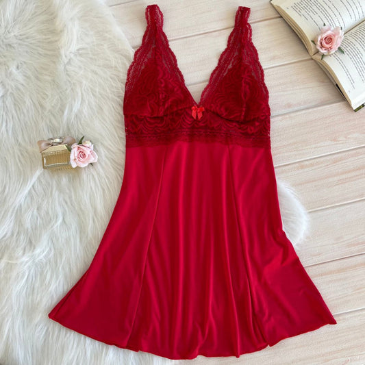 Camisola Sensual Alexia com Renda e Alça Cruzando as Costas