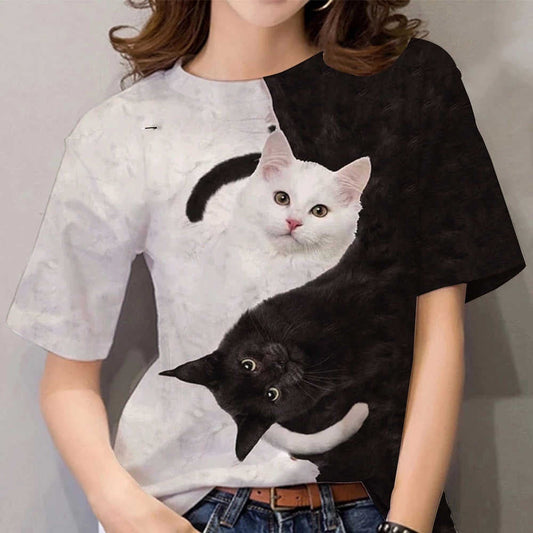 Camiseta De Gato Estampada 3D harajuku Mulheres Novidade Manga Curta Blusas