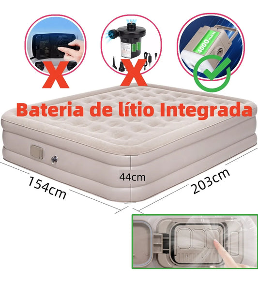 Colchão Inflável Queen com Bateria de Lítio Integrada